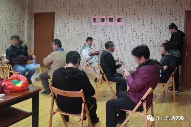 2017年12月14日,应残友们的需求,乐助社工邀请泰伯三社区姐妹编织队的阿姨们教授毛线编织。