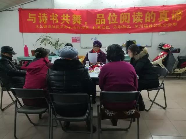 在姑苏小弄堂里有这么一群人,在寒冬之时依然坚持相聚小弄堂,特别是家住木渎的红星社区居民王女士依然坚持每周前来,与乐助社工、小组成员演奏起一曲诗书乐,创造出快乐的音符。
