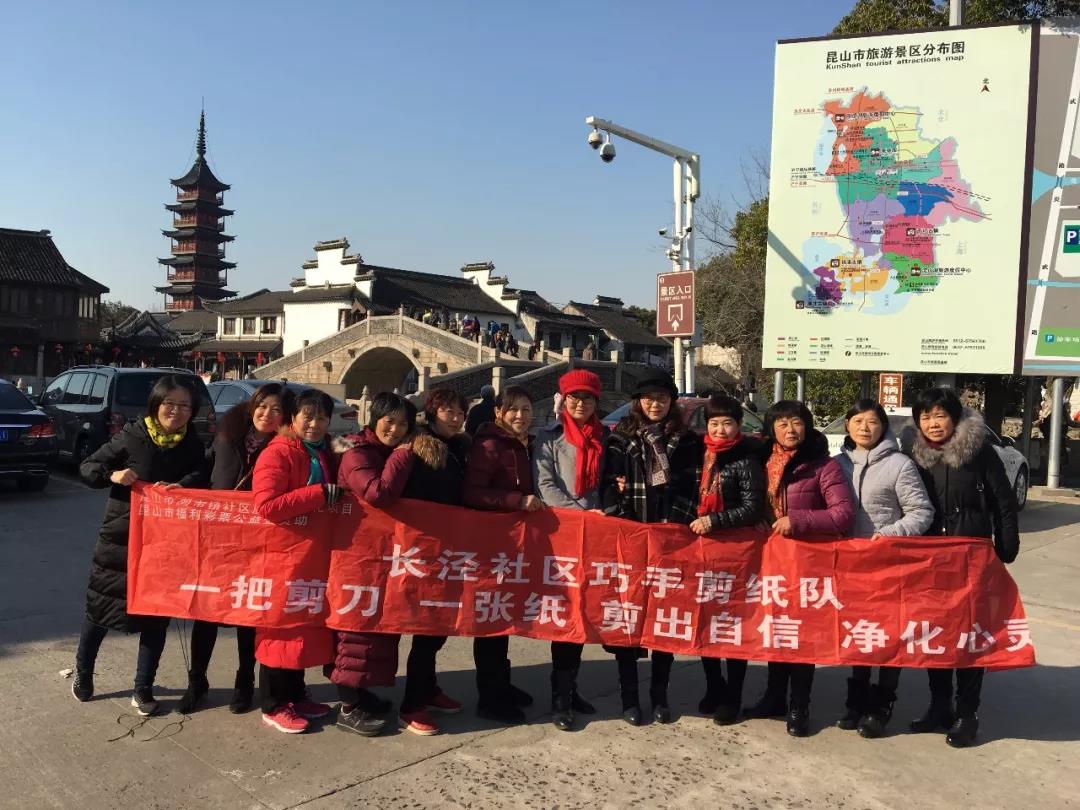 长泾社区老年剪纸班自从成立以来,每周四下午常规活动,大家对剪纸艺术的热情十分高涨,为了帮助团队成员提高剪纸技法,捕捉艺术灵感,进一步增强团队成员的凝聚力,今天乐仁社工特别组织剪纸班成员去千灯参观学习。