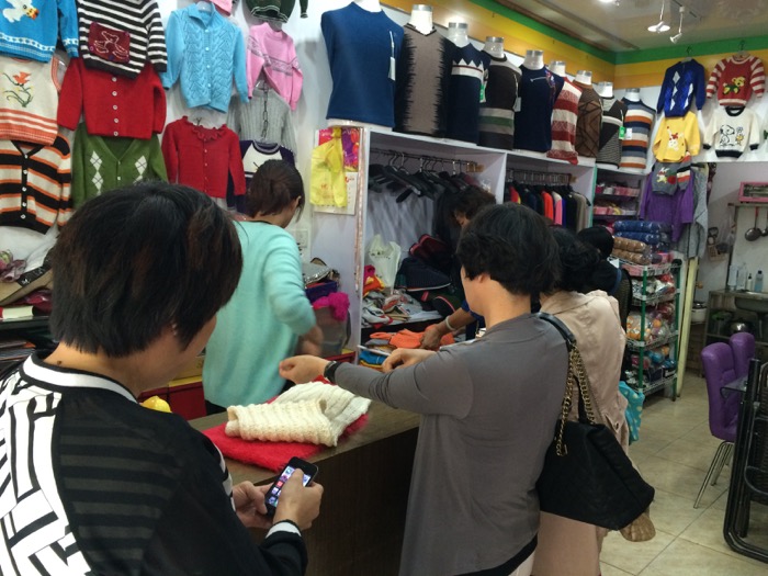 上午9点,由花都社区银龄手工坊王阿姨组织大家7人在小区门口集合,搭乘2辆出租车从周市出发,到达北门路花园路,在王阿姨的带领下来到雅芳羊绒店。在确定地点后告知项目工作人员,并集合成功。等待店铺老板娘到来后,阿姨们在针织衫、披肩等手工织品里比较,随后询问了手工针织的方法,确认针织教学,材料的价格等,大家开始跟店老板娘洽谈需要学习的内容、购买的材料、数量、价格等,整个流程由社区居民自主商谈、决定,在手工坊小额资助的范围之外,社区居民提出自己垫付部分费用。