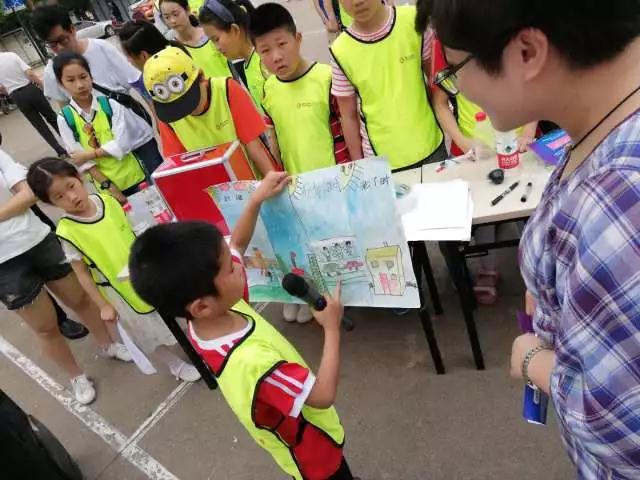 准备工作完成后,孩子们纷纷穿上了小马甲,各自领取了义卖物资,自由组成了队伍,为了创意出发,进入到小区内向居民推介自己的创意,为墙体彩绘活动筹集资金。