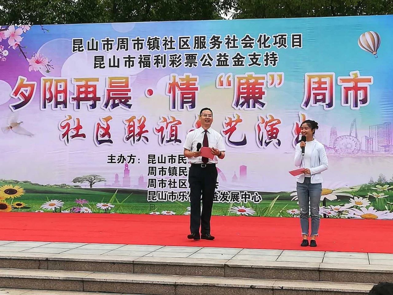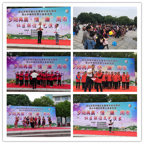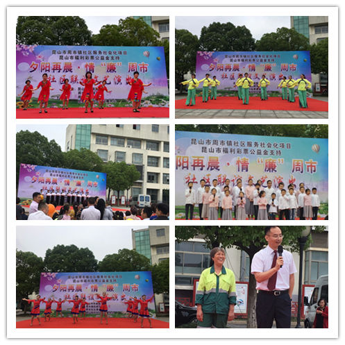 2018年6月3日上午,通过舞台搭建,邀请周市社区老年大学、长泾社区老年课堂以及永共村社区老年大学的学员团队,通过才艺展示交流的形式促进社区联谊交流,同时,响应廉洁文化宣传,弘扬周市廉洁精神,在周市镇尉州广场开展了主题为“夕阳再晨·情‘廉’周市”主题社区联谊文艺演出活动,吸引了周边200余位居民的参加。