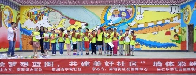 2018年6月2日下午,由南湖街宁松社区和乐仁乐助社会创新机构联合举办的墙体彩绘项目的收官之作在宁松社区松涛苑篮球场成功开展。