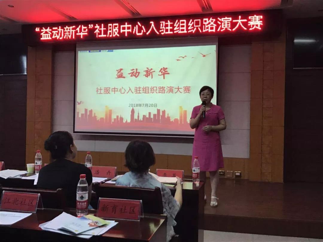 7月20日下午,“益动新华”社服中心入驻组织路演大赛在新华街精武路中石化大厦12楼举办。新华街工委书记方珺、街办事处主任陈钢、江汉区民政局社会组织管理服务中心负责人潘卉、新华街办事处副主任李菁、武汉科技大学文法与经济学院教授李莉、武汉市乐仁乐助公益发展与社会创新中心总干事钱琦、社会组织代表、新华街各社区书记、骨干社区工作者以及居民代表等80余人参加了本次大赛。大赛由新华街办事处主办,新华街社会工作服务中心和乐仁乐助社会创新机构联合承办。