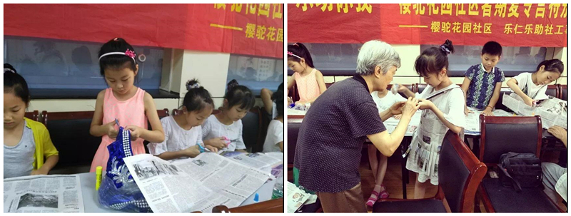 哈哈,让我做衣服真的做不出来,好难呀。然后老师带着我们做衣服,我们的爷爷奶奶也跟着一起做,有种总动员的感觉呢!看我们做衣服的样子多专注