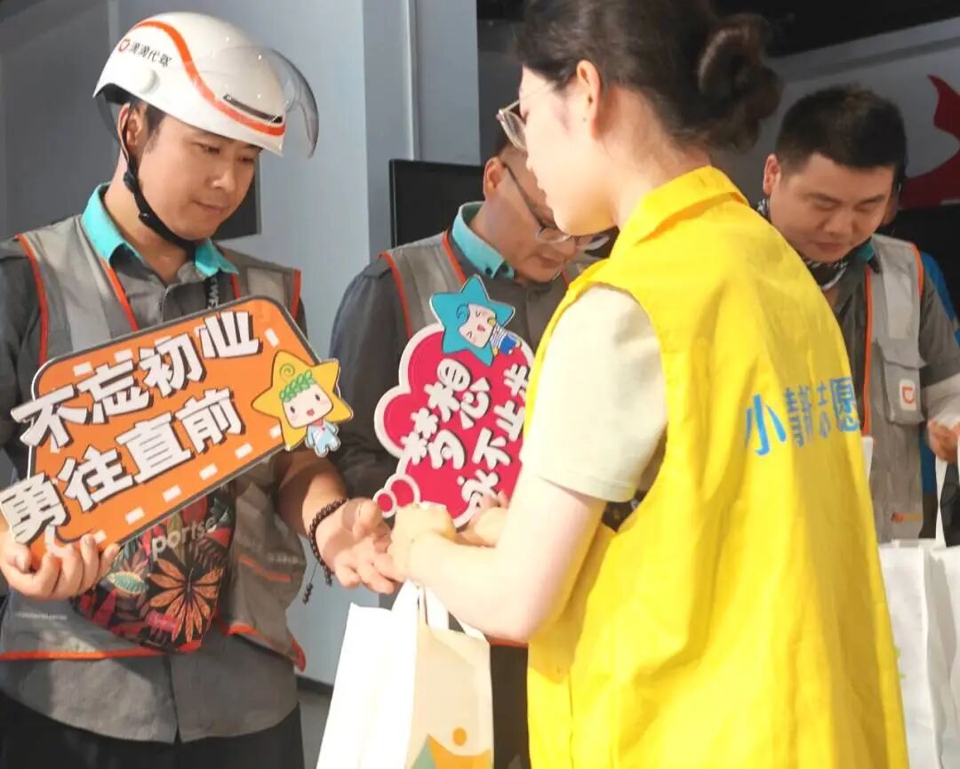 8月12日,枫桥街道社工站携手苏州地铁8号线开展“夏日送清凉”特别关爱行动,为辖区内的滴滴司机、外卖骑手等新业态劳动者送去暖心关怀。枫桥街道非公委、团工委与苏州地铁8号线古楼区域团支部、时代广场区域团支部、车坊区域团支部代表共同参与本次活动。