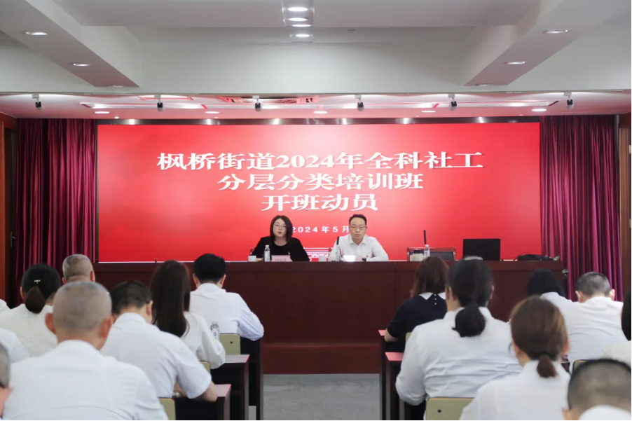 为打造一支政治坚定、素质优良、敬业奉献、群众满意的社区工作者队伍,全面提升社区治理科学化和专业化水平,今天(5月23日),枫桥街道举行全科社工分层分类培训班开班动员会。